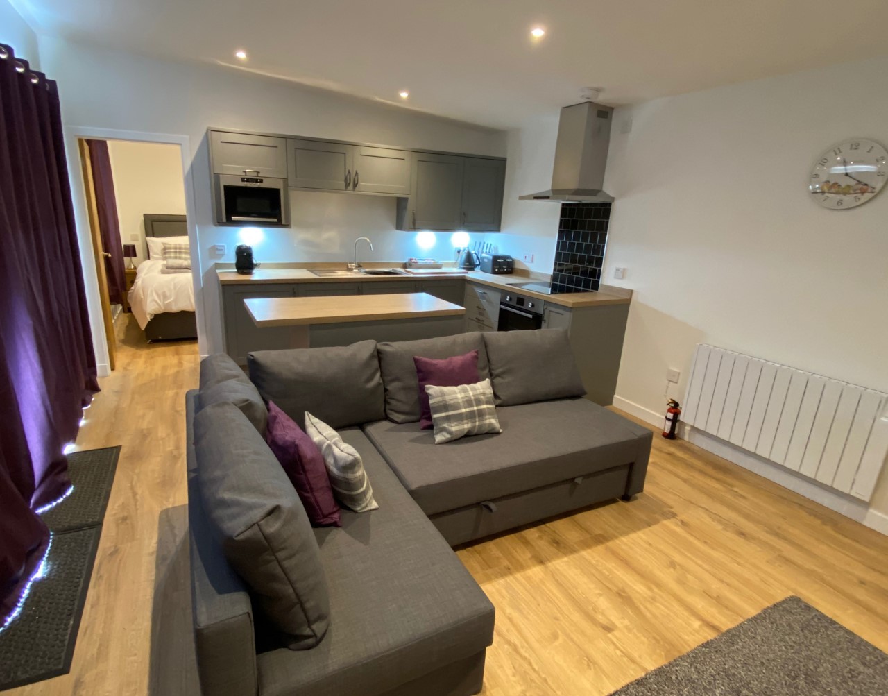 The cottage, previously three stables, are newly refurbished, into a charming one bedroomed one level cottage with generous kitchen with breakfast bar, lounge and shower room. Comfortably sleeps 2 adults and can accommodate a family of 4, with the option to turn the impressive corner sofa into a king size bed for the kids. The glass frontage allows bright and welcoming arrival. Presented in immaculate condition and upon arrival, guests fully appreciate the extent and quality of accommodation on offer.
